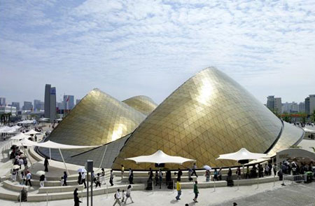 福斯特事務(wù)所設(shè)計(jì)的展館在上海世博會(huì)上吸引了200萬(wàn)參觀者,這也是目前為止世博會(huì)上的展館中唯一一座重建的展館。其彎曲的外形很像是連綿起伏的沙丘。