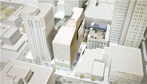 4、從霍華德街(Howard Street)看斯諾赫塔建筑事務(wù)所的“舊金山現(xiàn)代藝術(shù)博物館”擴(kuò)建方案。