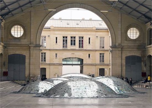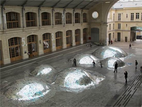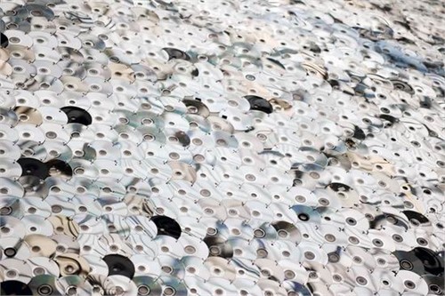 法國藝術家elise morin和建筑師clémence eliard共同創(chuàng)作的作品“廢棄景觀”,這件作品位于巴黎centquatre,由65000張舊CD組成,藝術家經(jīng)過精心挑選,并將它們縫合起來,組成了一個500平方米的平面。屆時,這件大型公共藝術作品將在巴黎centquatre展出,展覽日期截止到9月10日。