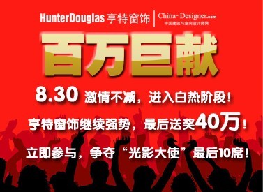 “亨特窗飾百萬巨獻(xiàn) 尋找光影大使”活動(dòng)自啟動(dòng)以來,轟動(dòng)全國!隨著第一~三輪抽獎(jiǎng)的圓滿落幕,活動(dòng)熱力持續(xù)升溫,進(jìn)入白熱化階段,第四輪抽獎(jiǎng)將于8.30引發(fā)十城聯(lián)動(dòng),屆時(shí)將會(huì)繼續(xù)在全國十個(gè)大小城市同時(shí)產(chǎn)生共10名幸運(yùn)光影大使!最終40萬亨特窗飾獎(jiǎng)品將花落誰家?我們拭目而待!