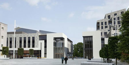 這個(gè)1.25萬平方米的工程是南安普頓文化區(qū)開發(fā)項(xiàng)目的一部分,位于市民中心的東部。一條新的步行道將其分為兩座建筑,以Guildhall廣場(chǎng)和一座二級(jí)保護(hù)名錄的公園相連。