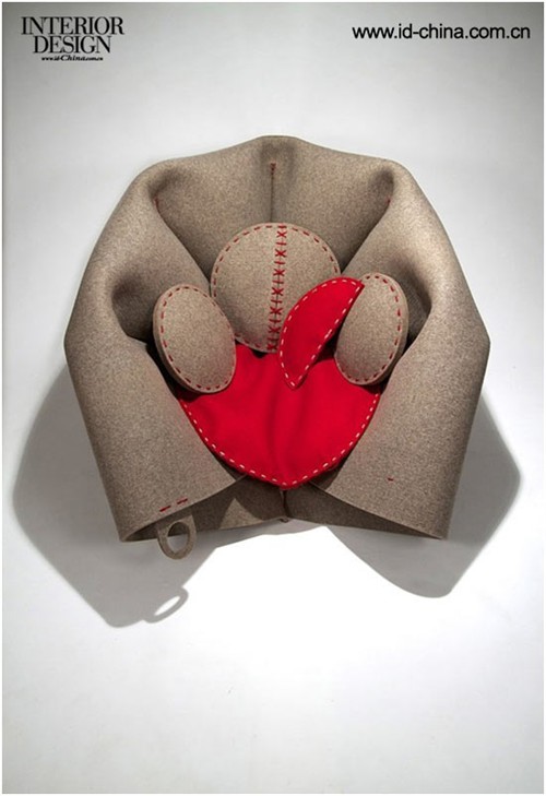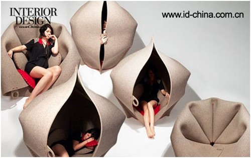 辦公室,公共建筑,電視,網(wǎng)絡(luò)以及攝像頭等等,讓人類與這個(gè)時(shí)間前所未有的緊密聯(lián)系。但是,我們什么時(shí)候避開這些連接。設(shè)計(jì)師認(rèn)為這個(gè)具有“子宮”般的形狀的休息空間溫暖,舒適?,F(xiàn)在人口超過千萬的城市越來越多,空間越來越奢侈,越來越多的人不得不與同伴,兄弟和朋友共享空間。但是追求隱私權(quán)是生活的重要部分,所以創(chuàng)建了這樣一個(gè)“安靜”空間,讓人們進(jìn)入一個(gè)黑暗,安靜的自然空間中,適用于繁忙的機(jī)場,榜公示,商店等等公共場合,同時(shí)“HUSH”也可以轉(zhuǎn)變成為傳統(tǒng)的開放式座位。主體由整件1750mm x 4000mm x 12mm的100%羊毛材料制成,然后用超過150米的毛紗材料縫合。羊毛阻燃,透氣,耐用,具有彈性,同時(shí)適應(yīng)多氣候,非常溫暖,同時(shí)可以實(shí)現(xiàn)生物降解,不會在垃圾填埋場那么一直阻塞著。而且羊毛是從羊身上每年可持續(xù)成產(chǎn)。目前英國羊毛太多甚至形成了浪費(fèi)現(xiàn)象,英國羊毛質(zhì)地粗糙,可以出口,作為填料或者生產(chǎn)地毯。