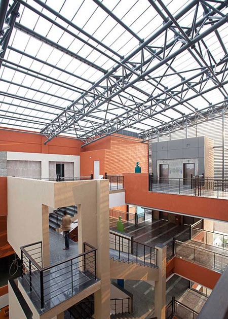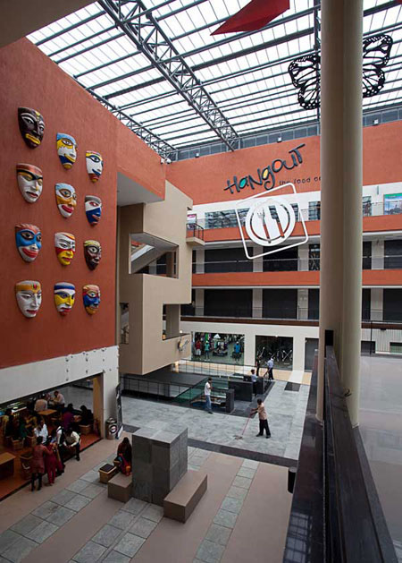 在各個(gè)空間里,內(nèi)外部立面上安裝了雕塑般的藝術(shù)品,增添了獨(dú)特的藝術(shù)主題。每一個(gè)樓層都有突出的景觀露臺(tái)。為了與傳統(tǒng)的印度街道和可靈活穿越的空間相對(duì)應(yīng),中庭被分割成精心布局的一個(gè)個(gè)小單元,滿足了顧客的需求。