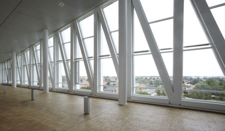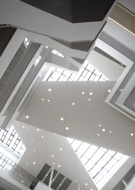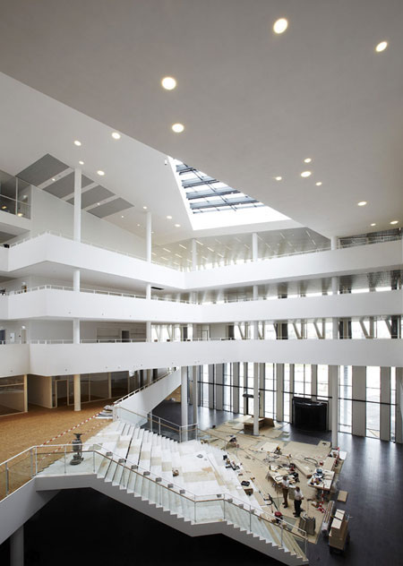 Viborg市政廳可容納800名員工,巨大的中庭里有一座蜿蜒的樓梯,同時(shí)設(shè)置了餐廳、會議室、屋頂露臺等,從露臺可一睹Viborg大教堂的勝景。辦公室和行政空間有6層。內(nèi)部空間中很大一部分是非常靈活的,餐廳、休息廳和附帶的會議室都可以改造成一個會議中心。