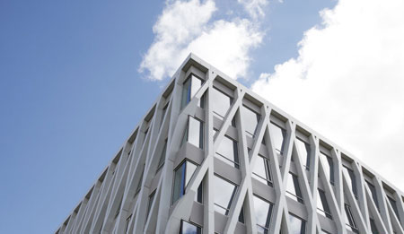 市政廳位于原先的兵營所在地,靠近市中心,大塊的玻璃窗引入自然光照,降低了能耗。HLA采用了很多可持續(xù)性的設(shè)計(jì)元素,如自然通風(fēng)、主動和被動式制冷系統(tǒng)、太陽能板、地下水制冷、三層玻璃窗板以及雨水收集器等。