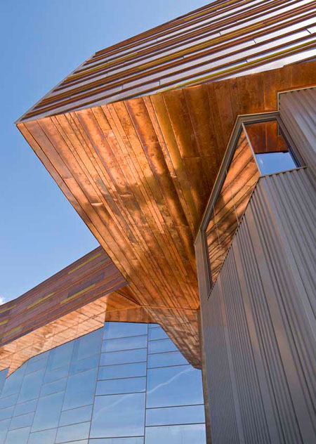 博物館的設(shè)計靈感即來自于周邊地區(qū)的非凡美景,很具氣勢,銅質(zhì)的外墻面與Wasatch山脈的延綿起伏相映成趣。