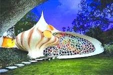 背景:這座像貝殼形狀的房屋建造于2006年。一塊塊石板鋪成的小路沿著灌木叢一直通向房屋的前門。房屋前的外墻壁上則鑲嵌著各種圖案。