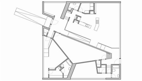 正方形住宅中的三角形空間作為一個內部戶外庭院使用