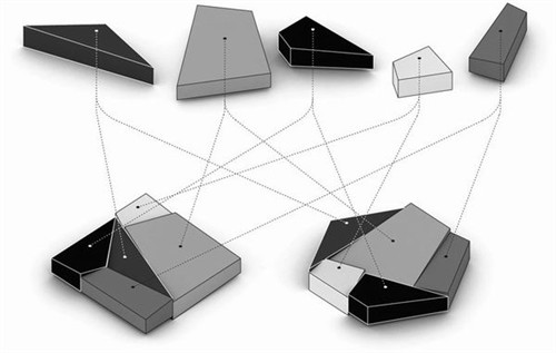 波士頓william o&rsquorien jr.建筑事務所最近完成了“twi: houses in five partrdquo;項目,這是為兩個家庭設計的住宅建筑,位于美國紐約上州。這兩座有著相似幾何形態(tài)的兄弟住宅被一個線性田地分隔。各自內部的體量是通過“解析”數(shù)學原理計算得出的,即面積相等的多邊形可能被劃分成相同形狀的空間。這兩座住宅分別采用了正方形和六邊形的平面布局,內部由四個不同的梯形和一個三角形組成。