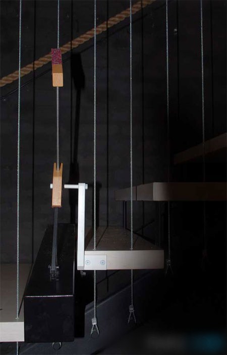 Lasva水塔的臺(tái)階制作成可以敲擊的琴鍵,吸引了眾多媒體前來采訪。各種厚度和寬度的鋼束配合木質(zhì)小錘,讓每一個(gè)臺(tái)階都發(fā)出自己的音符。除此之外,臺(tái)階也可以用作電子樂和模擬樂發(fā)聲,如模仿歌劇演唱、野獸嚎叫或者林間風(fēng)聲等。水塔的上層原來有水箱,現(xiàn)在改成音響空間,從生銹的鋼質(zhì)水箱上重新利用的材料可在夏季表演期間,用做戶外長(zhǎng)凳。
