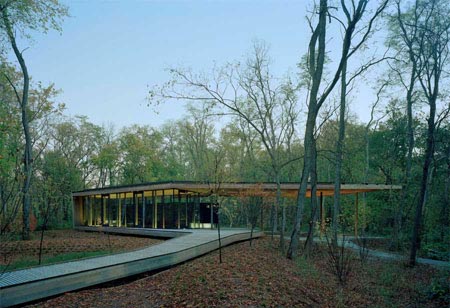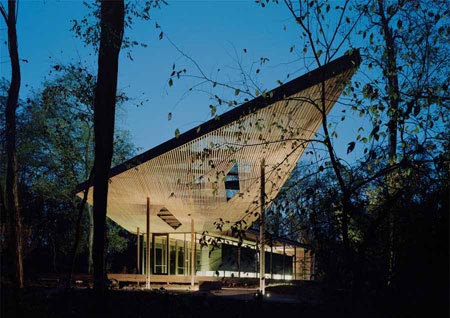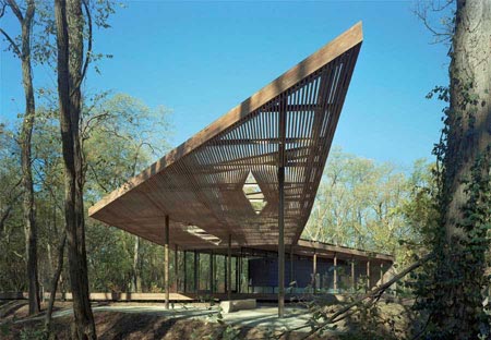 美國(guó)印第安納波利斯藝術(shù)館(Indianapolis Museum of Art)有占地100英畝的藝術(shù)和自然花園,而Maron Blackwell事務(wù)所設(shè)計(jì)的Ruth Lilly游客中心則成為人們休息和回想藝術(shù)體驗(yàn)的場(chǎng)所。它成為建筑、土地和藝術(shù)之間的一個(gè)紐帶,既是一道門檻,又是一處目的地,以突出的鋼制甲板和頂棚形成了獨(dú)特的外觀。