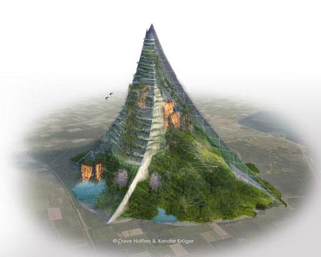 荷蘭記者Thijs Zoeveld原先是一名職業(yè)自行車賽手。他一直抱怨荷蘭沒有像樣的登山運動訓練設施,便想出了花費3000億歐元建造一座人造山峰的概念。這座山峰將比斯諾登峰(owdon,海拔1085米)高一倍,取名為"Die Berg Komt Er",英文譯為"飛來峰"(The Mountain Comes)。