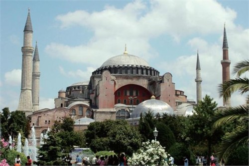 圣索菲亞大教堂位于土耳其最大城市伊斯坦布爾(即“君士坦丁堡”),始建于公元325年,是由羅馬帝國的君士坦丁大帝建造,后受損于戰(zhàn)亂。公元537年,東羅馬帝國(又名“拜占庭帝國”)的查士丁尼皇帝,為標(biāo)榜自己的文治武功將它進(jìn)行重建,作為東正教的宮廷教堂,持續(xù)了9個世紀(jì)。