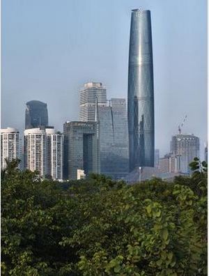 440米高的“廣州國(guó)際金融中心”由威爾金森-艾爾建筑事務(wù)所和奧雅納工程公司(Arup)設(shè)計(jì)。在附近的深圳的由孚若珥設(shè)計(jì)公司(Farrells)設(shè)計(jì)的441.8米的“京基100”(Kingkey100)大廈建成之后,“廣州國(guó)際金融中心”才失去它的中國(guó)最高建筑的王冠。但“廣州國(guó)際金融中心”仍然是中國(guó)最高的建筑物之一。