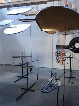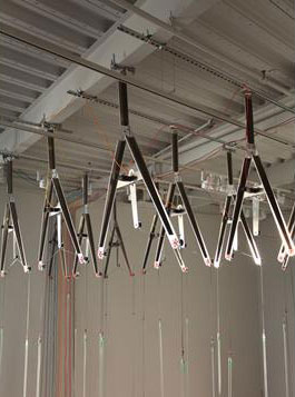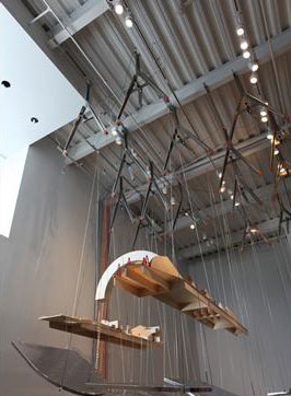 Mark Smout和Laura Allen在內(nèi)華達(dá)美術(shù)館的展覽"景觀未來:工具、裝置和建筑發(fā)明"上設(shè)計(jì)的藝術(shù)品題為"表面張力"(Surface Teion),是一個8米高的可移動網(wǎng)絡(luò)狀結(jié)構(gòu)。