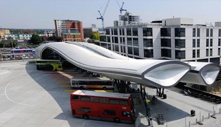 由lur事務(wù)所設(shè)計的英國Slough公車站點(diǎn)已經(jīng)建成。這座建筑取代了1970年代建造的Brunel公車站,后者曾經(jīng)在電視喜劇系列片《辦公室》(The Office)開場中亮相。