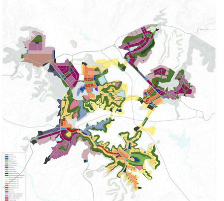 這座新城主要由三部分組成:占地2000公頃的操作區(qū),占地2000公頃的非操作區(qū)和1400公頃的國內(nèi)關(guān)稅區(qū)。操作區(qū)是主要的就業(yè)區(qū),集中于以出口為導(dǎo)向的非污染工業(yè)和科研設(shè)施;非操作區(qū)是多功能的社區(qū),并靠近就業(yè)集中地點(diǎn);國內(nèi)關(guān)稅區(qū)則是剩下的靈活區(qū)域,能夠根據(jù)變化的市場需求進(jìn)行未來的開發(fā)。