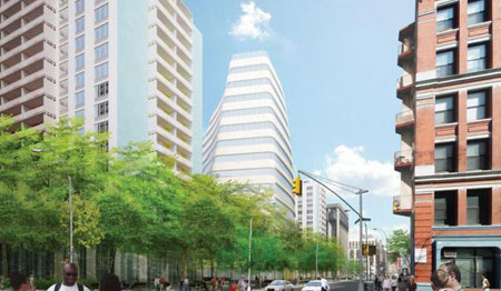 紐約大學(xué)核心開(kāi)發(fā)地區(qū)是圍繞著華盛頓廣場(chǎng)花園的7座街區(qū),Grimshaw的方案涉及到公園以南的兩個(gè)街區(qū),將開(kāi)發(fā)成23萬(wàn)平方米的住宅、商業(yè)和零售空間,以及1.2公頃的公共空間。