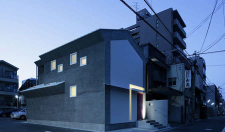 由Eastern公司設(shè)計(jì)的"鎖眼屋"(Keyhole House),其立面形似一個(gè)鎖眼,好像在說(shuō)"用一把鑰匙打開我的房子吧"。它位于京都市區(qū)一條狹窄的街道上,本身如同一把小小的鑰匙,即將開啟幸福生活的大門。