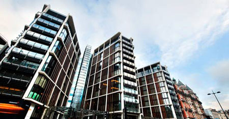 英國媒體城造價6億英鎊,它除了是C的新區(qū)域總部外,也服務(wù)于索爾福德大學(xué)媒體系,而且明年格蘭納達電視臺也將搬入這里。 從遠處看,媒體城就像匍匐著的毫無特征的辦公樓群之一,旁邊是冷清暗淡的城市廣場,與50年前的東歐城市沒什么兩樣。走近了看,這座建筑依然缺乏魅力和生機,一點都不像是塑造了迪拜地產(chǎn)的開發(fā)商Peel控股公司和Wilkion Eyre、Chapman Taylor以及Fairhurst設(shè)計集團等團隊所為。