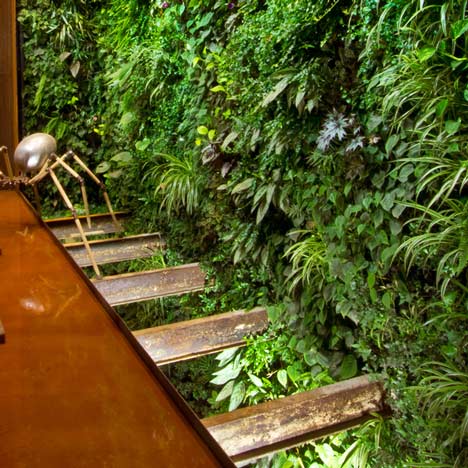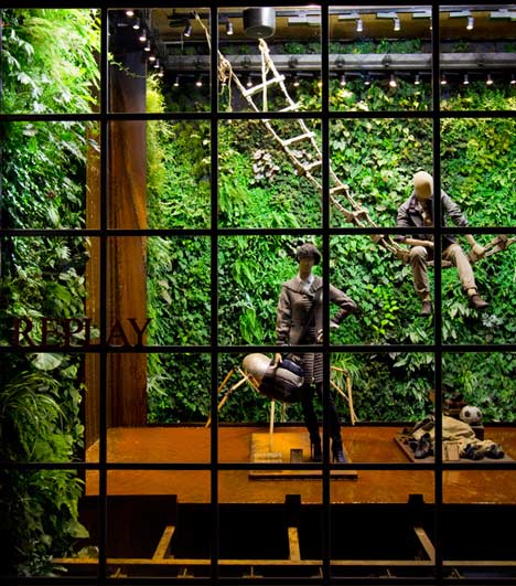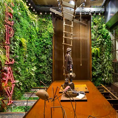 “重播”在巴塞羅那Paeig de Gràcia 的儲物倉設(shè)置了一個占地100平米的垂直花園。兩堵用瀑布、雕塑和反差強(qiáng)烈的材質(zhì)裝飾的充滿戲劇感和幽默感的墻面佇立在店面。在這個可以研究自然界的天然花園,瀑布就作為設(shè)計研究的起點。近距離觀察瀑布周邊的環(huán)境,線性的裂紋掩飾在巖石的下方,就像巖石被腐蝕出的不規(guī)則的幾何體,重新被有機(jī)的組合在一起。