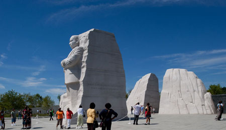 馬丁ull;路德ull;金紀(jì)念碑在經(jīng)歷了紛爭之后終于在美國華盛頓國家大草坪(National Mall)揭幕。它紀(jì)念金博士為爭取所有人的平等所做出的艱苦卓絕的努力,并于8月28日正式開放,時(shí)值華盛頓民權(quán)運(yùn)動(dòng)游行和金博士發(fā)表的《我有一個(gè)夢(mèng)想》講演48周年。