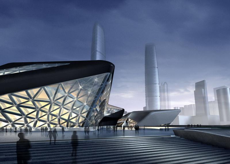 簡單描述: 廣州市歌劇院由世界著名設(shè)計師扎哈·哈迪德(英國)主持設(shè)計,位于珠江新城J4地塊。其外形如“圓潤雙礫”,就像置于平緩山丘上的兩塊礫石,在珠江邊顯得十分特別。由于采用鋼-鋼砼混合結(jié)構(gòu),預(yù)計用鋼量將超過12000噸(未考慮深化設(shè)計時增加的各類節(jié)點板、支座板及輔助構(gòu)件),相當(dāng)于中國國家大劇院穹頂用鋼量6750噸的兩倍。 廣州歌劇院-建筑特點 廣州歌劇院在規(guī)劃設(shè)計中,廣州歌劇院、博物館分別位于新城軸線起點的兩側(cè),與中央廣場、濱江綠帶共同形成文化藝術(shù)廣場,成為一個開放、自信的國際都市展示自身魅力的舞臺。藝術(shù)廣場的設(shè)計秉承了廣州珠江新城城市設(shè)計的精神與理念,在三個方面豐富并深化了城市設(shè)計的成果。 1 整合都市界面 位于縱軸線兩側(cè)的新城建筑群,以強烈的幾何秩序、人工形態(tài)突出縱軸垂直向度的起伏與縱深感。在縱軸與橫軸的交匯處,歌劇院與博物館通過一片水平舒展的體量,形成都市界面戲劇性的收放。 建筑及其廣場由外緣向中心下傾的連續(xù)變化,加之地面微妙的起伏,柔化了都市界面,實現(xiàn)了與自然界面輕柔的接觸。 通過完整連續(xù)的體量與立面肌理處理,整個藝術(shù)廣場清晰地表達(dá)出個體建筑與城市之間的內(nèi)在邏輯,城市整體空間得以完成,建筑設(shè)計融會于都市設(shè)計。 2 豐富都市景觀 廣場設(shè)計中,通過自然形態(tài)與人工幾何形態(tài)的交疊,自然環(huán)境與建筑環(huán)境的滲透,強調(diào)了壯觀的自然尺度(珠江)與親切的人文尺度(廣場)的對話。 在時間上,博物館是日間的藝術(shù)容器,歌劇院是夜色的舞臺,中心的文化藝術(shù)廣場則成為公共生活的“均衡器”,持續(xù)地充滿著活力。它們在時間演進(jìn)上共同構(gòu)成動態(tài)平衡的都市景觀,提供公眾藝術(shù)活動以變幻的場景。 |