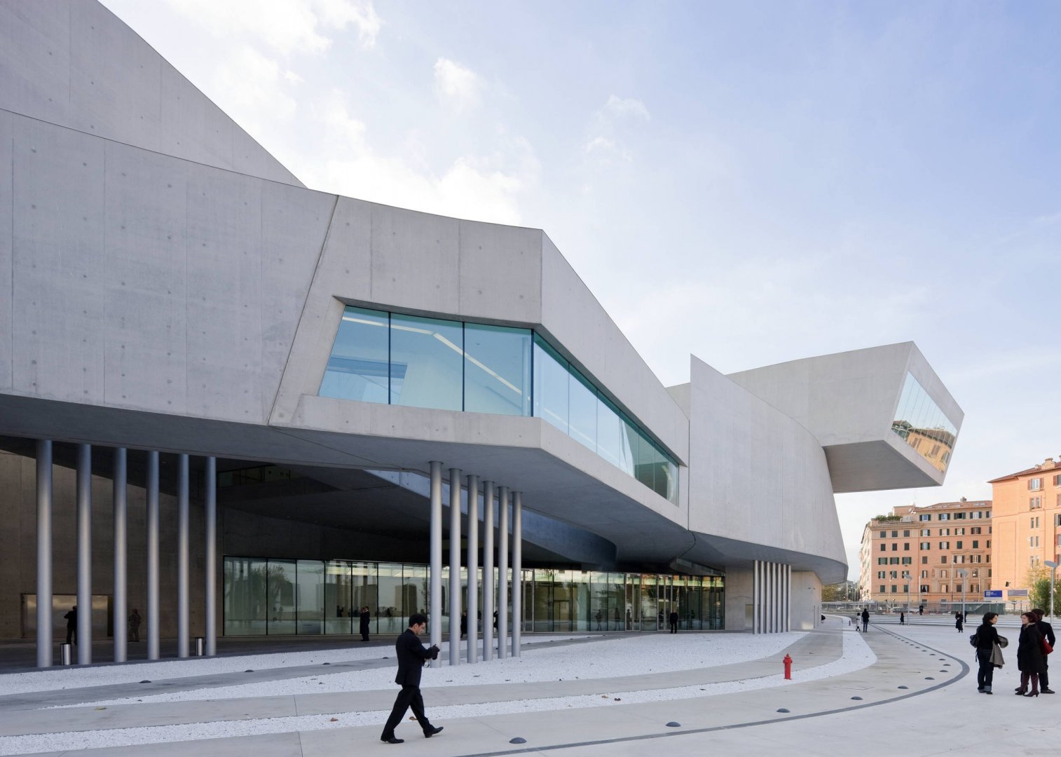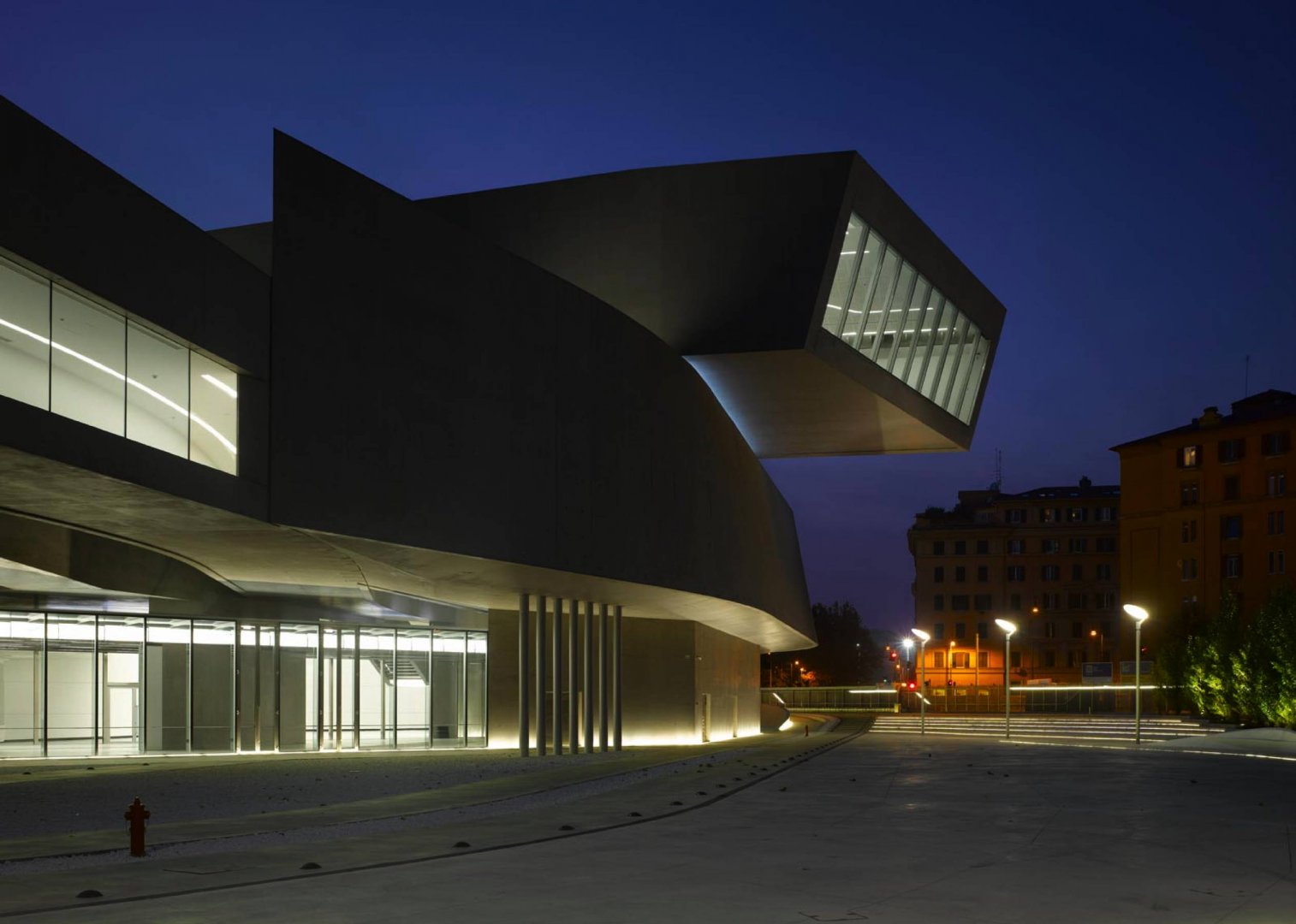 和以往項目一樣,扎哈提出了這樣的問題:解構(gòu)的流動性特征是否能夠與與羅馬這個擁有豐富古典文化遺產(chǎn)的“靜態(tài)”城市相匹配。幸好,評論家和公眾對此的反應(yīng)是積極的。尤其是在這樣一個文脈環(huán)境和現(xiàn)有城市架構(gòu)中,平滑的弧墻面與新古典主義的勻稱立面形成了良好對話。這個新的有機體成長過程中呼應(yīng)了其前面的建筑物,而且其側(cè)面由簡潔厚實的表面所覆蓋,展示出了建筑的靈活性和共生性。博物館很好地契合于其城市基地/肌理中,沿著建筑控制線,從一端到另一端形成一個全景視域。