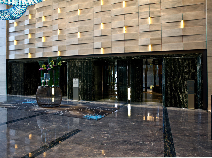 簡單描述:京基100(KK100),原名京基金融中心(KingKey Financial Center),樓高441.8米,共100層,是目前深圳第一高樓、中國內(nèi)地第三高樓、全球第八高樓。京基100是深圳房企京基集團(tuán)旗下的世界級地標(biāo),也是中國民營地產(chǎn)企業(yè)投資建造的最高建筑,保持了多項中國記錄、世界紀(jì)錄,并獲得了多項世界級獎項。 電梯間以其獨特的墻面設(shè)計迎接著每一位乘客,墻面的上半部分由一塊塊木紋石搭建而成,一凸一平的設(shè)計打破以往的平面束縛,充滿立體感和藝術(shù)感,給視角疲勞的都市人恍然一新的感覺。下半部分的黑金花墻面給人穩(wěn)重和高貴感,其基本色調(diào)為黑色,既不耀眼又顯得莊重,金黃色斑紋斷斷續(xù)續(xù)呈條紋狀均勻分布,就像在黑色的緞面上撒了一層黃燦燦的金花,體現(xiàn)出其特有的富麗堂皇、華麗高貴。 |