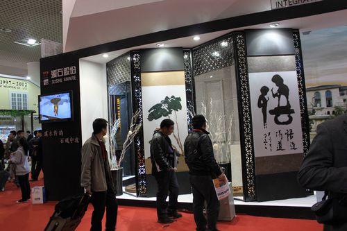 很多種中型企業(yè)在品牌運作方面做得比較精細。以英良和溪石為主。英良以5號倉庫品牌作為主打,雖然還是以產品展示為主,但是其奇特、精美的產品對于“為奢華而生”的解釋也是比較到位的。溪石展示了“石材與裝飾一體化服務商”,以具有文化品味的裝飾以及對這一口號詳細的解釋來達到目的。