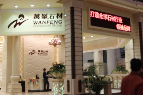 萬峰石材作為人造石行業(yè),打出 “打造全球石材行業(yè)領袖品牌”的口號,這一擦邊球的大膽做法有著成熟建材企業(yè)早期做品牌的影子,這對于經銷加盟來說是有力的噱頭。