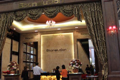 環(huán)球石材、康利石材、高時、萬里石、萬隆等龍頭企業(yè)更加注重整體形象的提升,環(huán)球以藝術性、整體性的系統(tǒng)空間裝飾詮釋了“品位,成就經典”的傳播口號??道灾魍飘a品藍翡翠為基礎元素,大氣的展示突出了企業(yè)的實力。