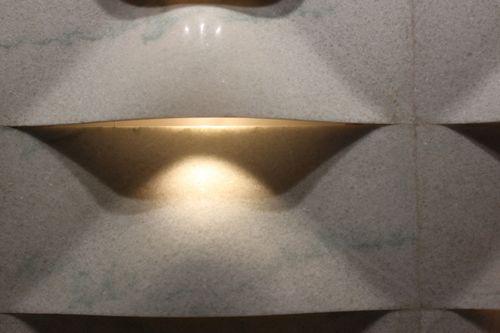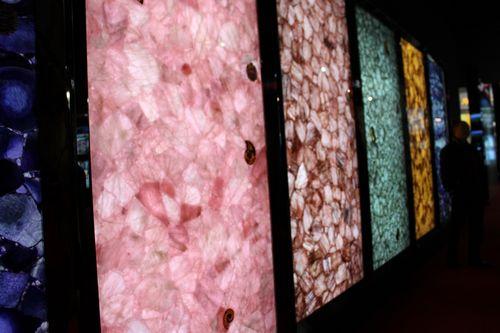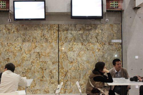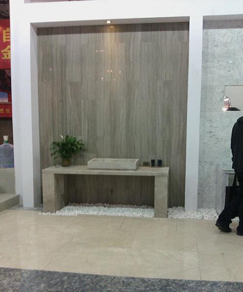 根據整體裝飾風格及材料,在高端裝飾材料應用中,天然木材和石材的結合可以提升整體空間檔次。所以,個人認為應該多加一些木紋石,或者是能夠與高檔天然木材(或其他裝飾材料)搭配的產品。在本次展會中,木紋石的比重也比較大。