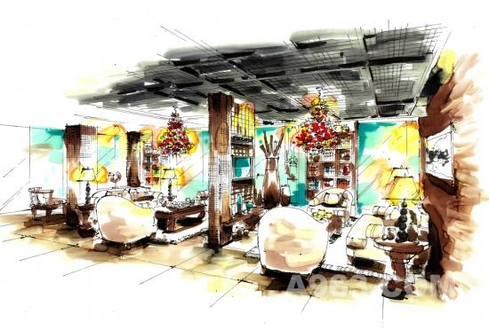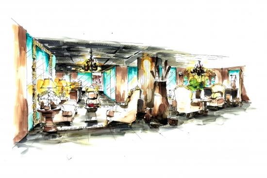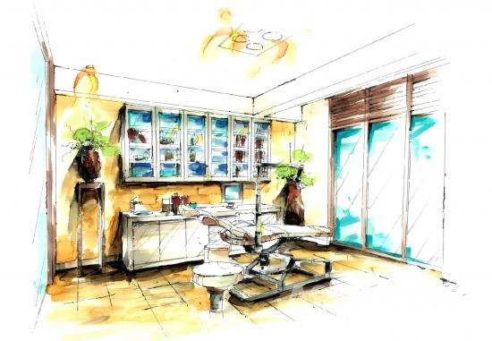 任清泉設(shè)計(jì)作品:廣州凱怡牙科會(huì)所手繪方案圖-門廳稿