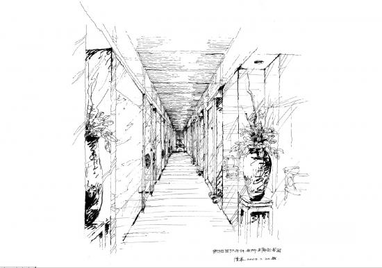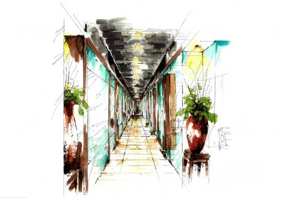 任清泉設(shè)計(jì)作品:廣州凱怡牙科會(huì)所手繪方案圖-等待區(qū)過道效果圖