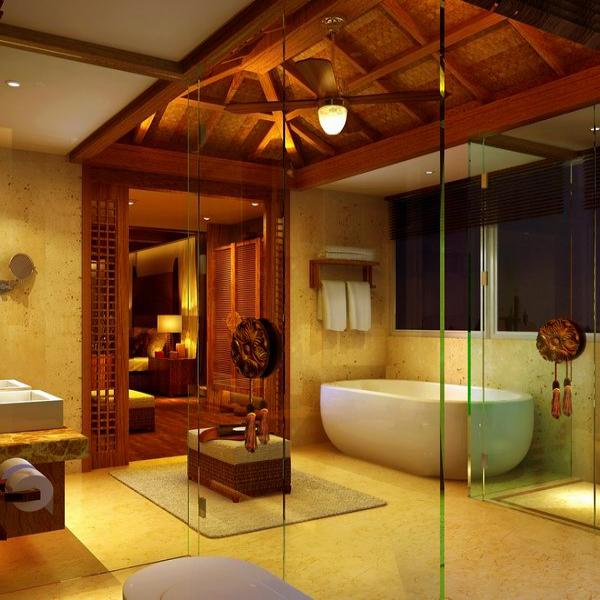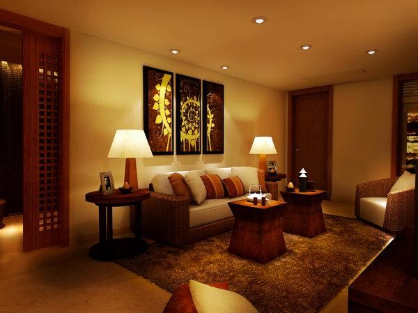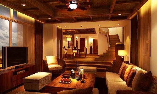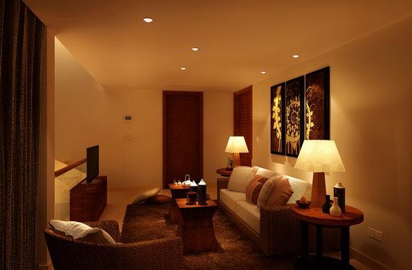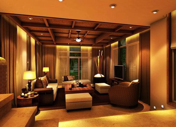 本項(xiàng)目位于??谑校拷_呑匀画h(huán)境非常優(yōu)美,建筑和園林采用了東南亞巴厘島風(fēng)格。室內(nèi)設(shè)計(jì)沿用了建筑設(shè)計(jì)的風(fēng)格,使室內(nèi)外自然的結(jié)合起來(lái),在室內(nèi)讓人能想起室外園林及建筑,使室內(nèi)空間無(wú)形中有擴(kuò)大的感覺(jué)。一樓把客廳、門(mén)廳、餐廳共享作成相對(duì)獨(dú)立又能互動(dòng)的空間,使配套家具、燈具和擺件能互動(dòng)起來(lái),使空間感到豐富而有情趣。二樓把原建筑挑空部分利用起來(lái)做成公共書(shū)房,