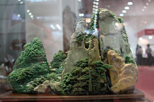 這件名為《仙山幽谷》的作品,材料是浙江青田山炮夾板綠,標(biāo)價(jià)為268萬(wàn)人民幣。