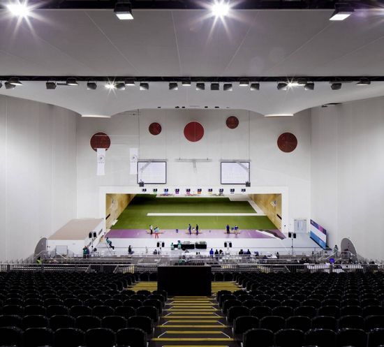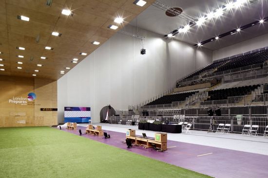 2012年倫敦奧運會將于2012年7月27日(星期五)開幕。該項目是由Magma Architecture設(shè)計的2012倫敦奧運會射擊場館。場館包含三個PVC帳篷,它們屹立在倫敦歷史性的皇家炮團軍營場地內(nèi)。紅色的,藍色的,粉色的圓形開口為室內(nèi)帶來通風(fēng),同時又為白色表皮下的鋼鐵結(jié)構(gòu)創(chuàng)造張力節(jié)點。一些自然光滲入PVC薄膜中,入口則包含在幾個接近地面的地點內(nèi)。因為這是一個臨時結(jié)構(gòu),所以奧運會后它將被拆除,但是又會在2014英聯(lián)邦運動會上重新搭建。