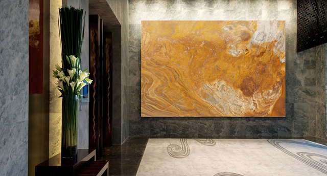 黃袍這款石材背景墻,底色是帝王之家的富貴黃,富貴逼人、大氣磅礴,如沒有強(qiáng)大的自信心與人格魅力,不敢選用!