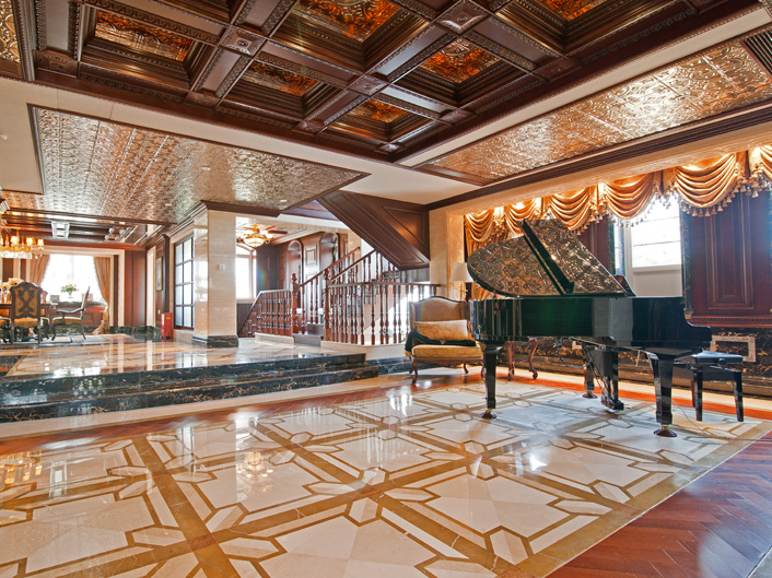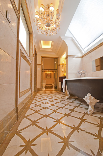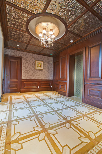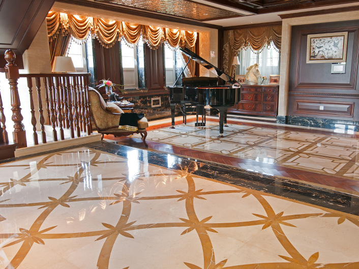 石材用量約3500㎡,大量使用在室內(nèi)地面及墻面。