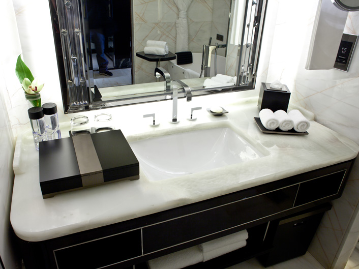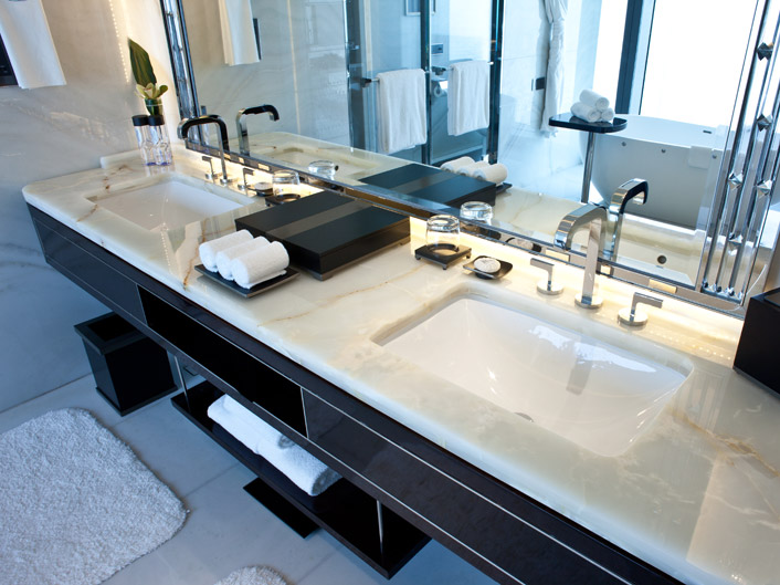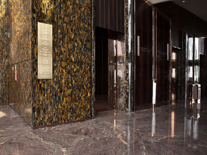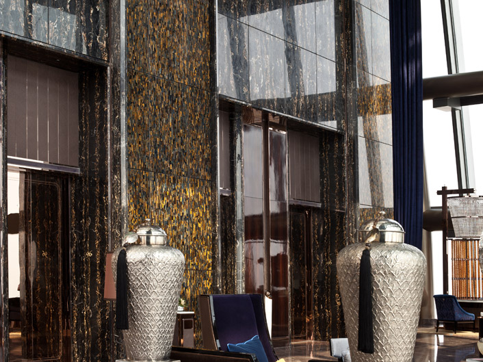 石材品種: 黃藍(lán)虎眼 白玉石 黑金花 蜘蛛玉 春天玫瑰 法國紫彩 亮點(diǎn):黃藍(lán)虎眼石大面積裝飾墻面 概述: 瑞吉酒店的歷史起源于黃金時(shí)代的紐約,由財(cái)力雄厚的精英家族所構(gòu)建而成的首個(gè)貴族階層逐漸成型??▋?nèi)基、范德比爾特和洛克菲勒等名流是其中的佼佼者。 艾斯特家族就是這一新興社會(huì)階層的領(lǐng)導(dǎo)者,而 Caroline Astor 夫人則是這個(gè)上流社會(huì)的社交名媛。聰明過人、毅力非凡的艾斯特夫人在精心挑選合作對(duì)象之后創(chuàng)立了首個(gè)真正代表紐約的社團(tuán),這就是著名的“精英 400 ”。 融合了恒久精致與現(xiàn)代奢華,瑞吉品牌堅(jiān)定不移地信守其對(duì)于卓越的承諾。自從 John Jacob Astor 在一個(gè)世紀(jì)前于紐約創(chuàng)立地標(biāo)性的瑞吉酒店以來,瑞吉均位于全球最佳選址,以其無與倫比的奢華、妥帖周到的服務(wù)和典雅高貴的環(huán)境聞名于世。度身定制的服務(wù)與休閑設(shè)施,風(fēng)光怡人的選址以及充滿當(dāng)?shù)厣实暮廊A裝飾,盡顯瑞吉享譽(yù)全球的獨(dú)特之處,吸引了全球旅游者的關(guān)注。 深圳瑞吉酒店位于深圳的新地標(biāo)京基100上。京基100是一棟集國際商業(yè)中心,5A超甲級(jí)寫字樓、超五星級(jí)酒店于一身的地標(biāo)建筑,為全球最具遠(yuǎn)見與創(chuàng)新意識(shí)的專業(yè)人士,提供一體化的國際金融辦公與生活環(huán)境。主樓高度441.8米,地上98層,地下4層,成為全球第八高摩天樓。該建筑首層大堂、公共區(qū)域及酒店部分均由我司加工,分別用料為:羅馬洞石墻面2萬多㎡;意大利木紋石地面13000㎡;白玉石客房2300㎡?,F(xiàn)京基100由我司圓滿的完成供貨任務(wù)并及時(shí)交付使用,得到了甲方認(rèn)可并送了我司優(yōu)秀合作單位稱號(hào)。 |