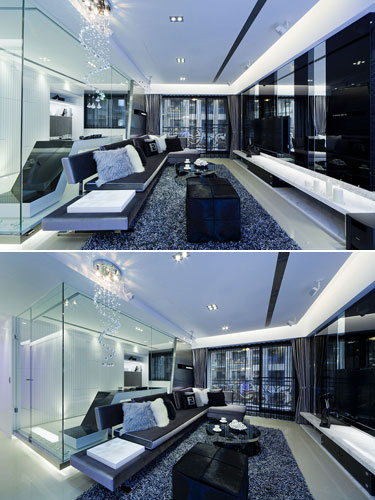 前衛(wèi)的家居設(shè)計(jì)通過(guò)光與影,鏡面與空間的結(jié)合讓家居的追求流行時(shí)尚達(dá)到另一種境界。以下2套家居設(shè)計(jì)分別利用光線和玻璃透視,來(lái)達(dá)到擴(kuò)大視覺(jué)面積,緩解壓抑,同時(shí)賦予家居超前衛(wèi)的時(shí)尚表情。