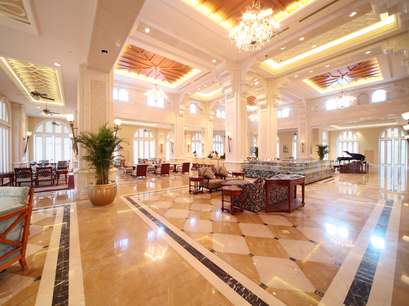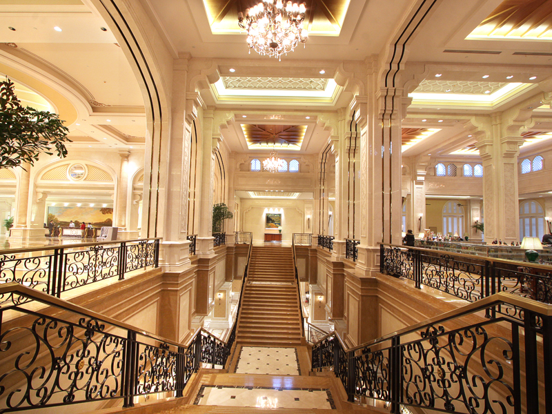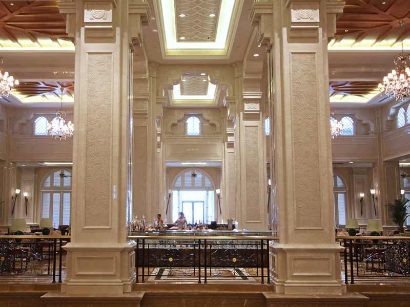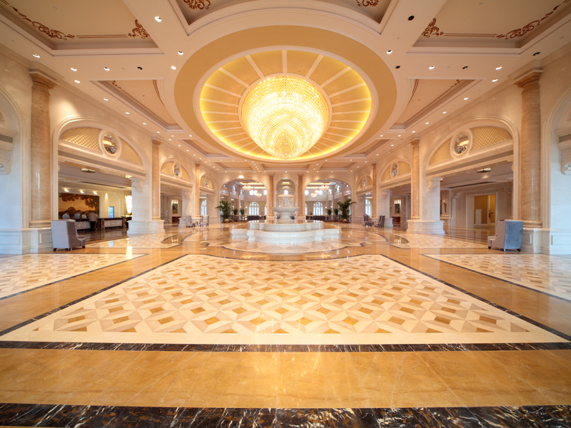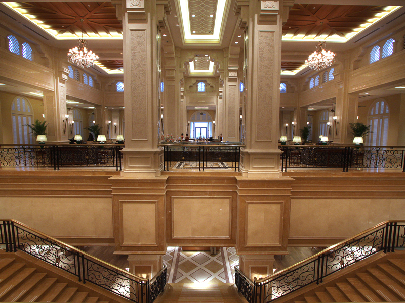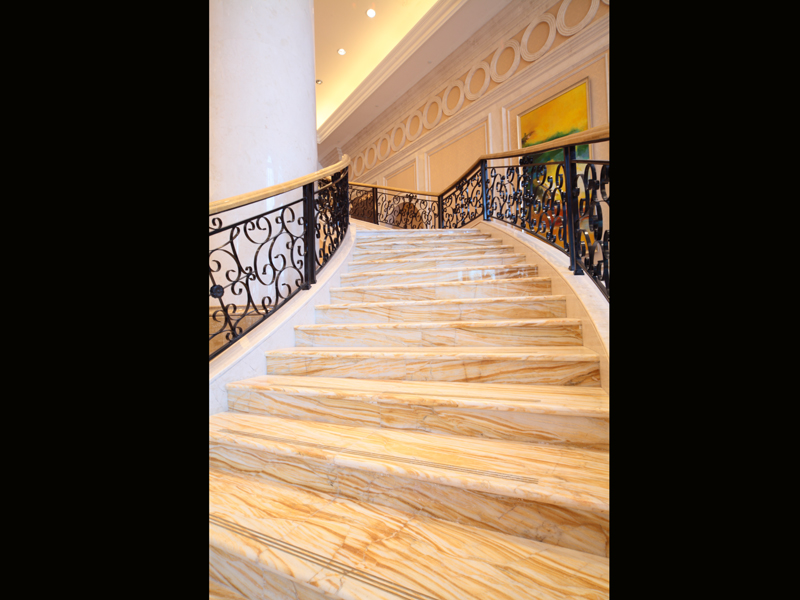 亮點(diǎn):酒店使用了大量的天然大理石裝飾,應(yīng)用在各式的石材柱子、地面以及墻面等,打造出豪華氣派,飾富麗堂皇,美侖美奐的餐廳,突顯酒店的尊貴及優(yōu)雅品味。酒店大堂整個(gè)空間以米黃色為主調(diào),運(yùn)用了多種不同色系的大理石進(jìn)行搭配,在頂部華麗吊燈的光輝下,大堂氣勢(shì)磅礴、高檔奢華。婉轉(zhuǎn)的旋轉(zhuǎn)樓梯和屹立著的大理石柱交相輝映,營造出無比輝煌氣派的酒店格調(diào)。