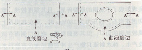 5. 用角磨機沿著所畫線的外輪廓線將要切除的部分磨去,然后修磨成所要磨邊的形狀。修磨時,角磨機運動的距離要盡量長,手握磨機要平穩(wěn),來回修磨。