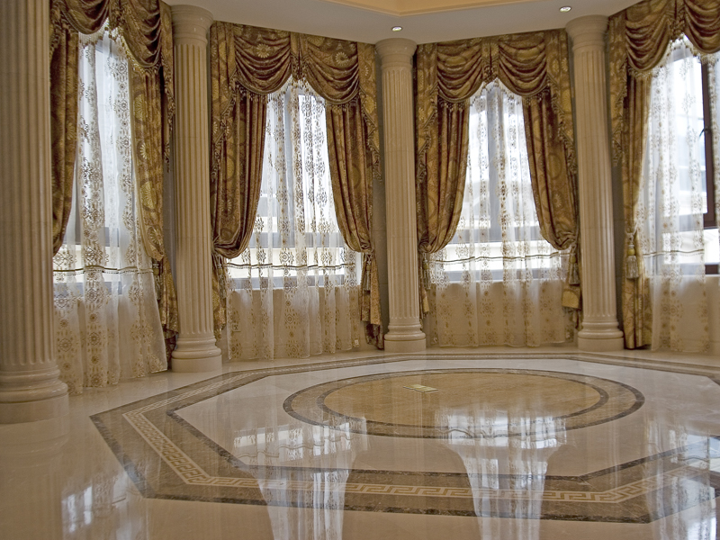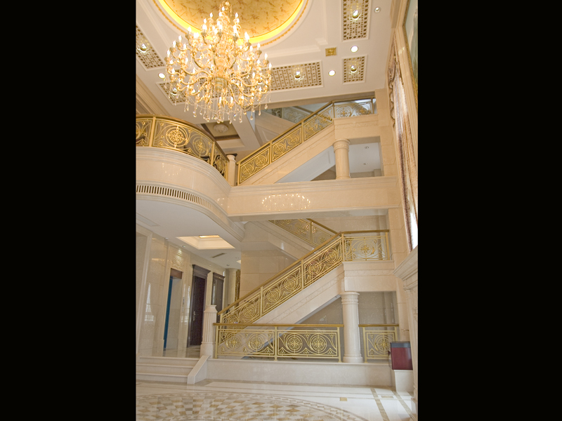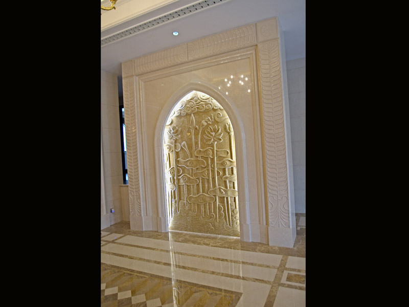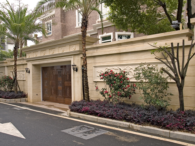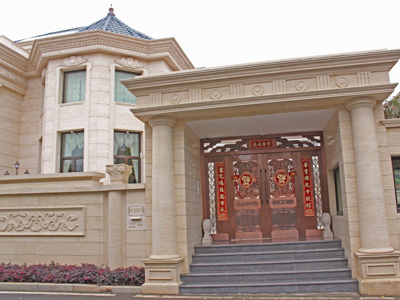 僅別墅裝修費(fèi)用就耗資二千萬。整個(gè)建筑外墻全是天然石材羅馬洞石包裹,甚至連圍墻和車庫都不吝使用,而且使用了大量的雕刻和拼花。整個(gè)建筑外部古樸而典雅,內(nèi)部富麗堂皇,使人仿佛置身于中世紀(jì)的歐洲宮殿。外墻大量的石材雕刻栩栩如生,石材上精美的浮雕圖案,優(yōu)美的羅馬柱,都將整個(gè)柯公館打造得猶如宮殿般輝煌。大廳的水刀拼花構(gòu)成無數(shù)個(gè)同心圓,在色彩深淺的規(guī)則變化中張顯簡約明快的風(fēng)格,碩大石材拼花幾乎占據(jù)一個(gè)大廳,讓人耳目一新,增添了許多浪漫清新的情趣;數(shù)根高大的莎安娜米黃大理石羅馬柱讓客廳猶如宮殿般的恢弘大氣,打造別樣的歐式皇室貴族風(fēng)格