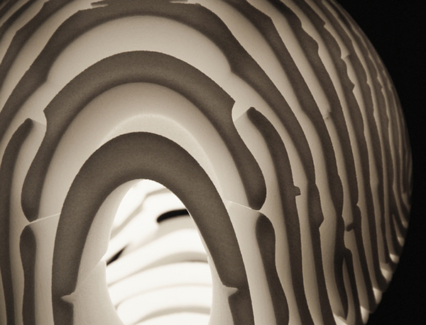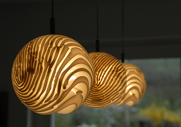 這些創(chuàng)意性的家居裝飾天花板垂飾燈罩來自以色列設(shè)計(jì)師Dan Yeffet命名為“Detail.MGX”,這個燈運(yùn)用了設(shè)計(jì)者的指紋,讓燈光能夠從指紋縫中穿過。