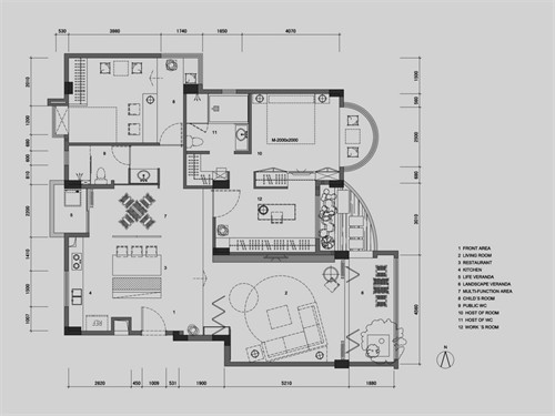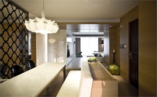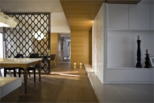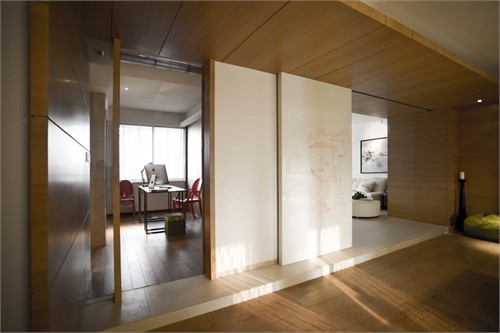 本案以長(zhǎng)和方為基本母體的幾何體劃分各功能空間,使其各空間能享受到充足的陽(yáng)光。室內(nèi)空間開敞、內(nèi)外通透,墻面、地面、天花一氣呵成,各空間的隔斷多采用靈活的折疊門,展現(xiàn)空間的靈活性與完整性,使得空間如此豐富變化。純粹的幾何形體縱橫生活之間,帶來視覺上的延展和張力;體現(xiàn)一種強(qiáng)烈的理性和象徵。