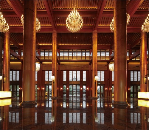 空間特征:大堂的設(shè)計(jì)繼承了中國傳統(tǒng)的木構(gòu)特點(diǎn),從中式層架結(jié)構(gòu)提煉出來簡易的造型,沉穩(wěn)而大氣。若干金色柱子讓人仿若置身宮殿,在富貴華美間揉入歷史的凝重感。大堂吧喜慶而熱烈的中國紅讓空間透露出高貴的意味,無數(shù)水晶玻璃錯落而成的京劇臉譜,盡顯戲劇人生的深刻含義??头總€性化的設(shè)計(jì),讓每個房間都充滿獨(dú)特的魅力,帶來無數(shù)驚喜。客人不但能在靜憩軒里品味到寧靜典雅、細(xì)膩浪漫,也能在頤和府中能感到尊貴大氣、莊重沉穩(wěn)。所有房型都充分注重了人與環(huán)境的交流與對話,隱隱透露出東方文化中遠(yuǎn)離喧囂的尊崇與高貴。