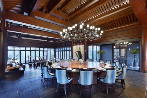設(shè)計(jì)風(fēng)格:酒店不同于海南大多東南亞風(fēng)格和地中海風(fēng)格的設(shè)計(jì),以現(xiàn)代手法詮釋和再現(xiàn)了中國皇室貴胄府邸的傳奇魅力,構(gòu)建了新中式意境美之典范。空間匯聚了華貴恢弘的氣魄,寧靜深邃的雅致,瑰麗奢華的驚艷以及自然和諧的舒適。