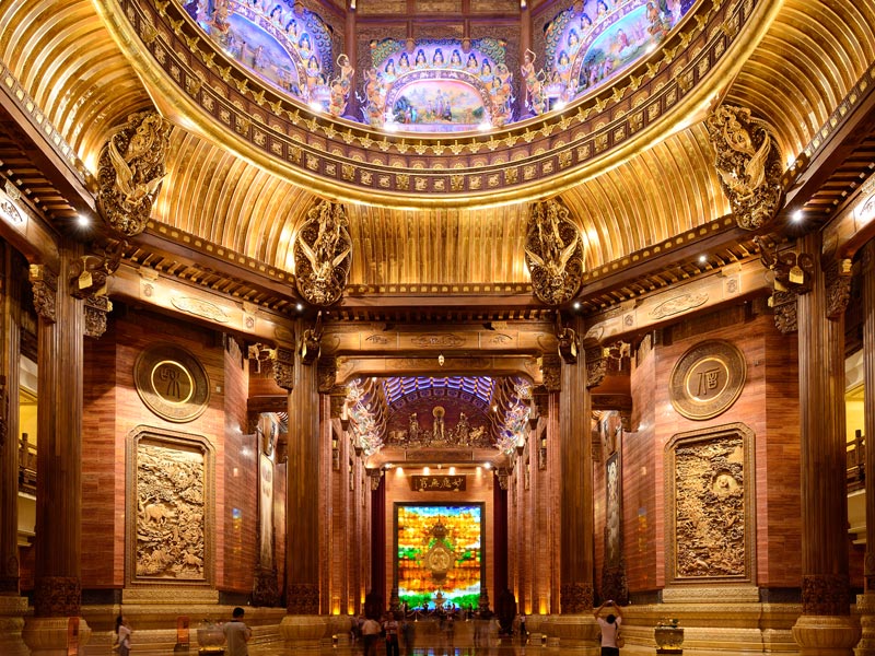 2008年11月23日,一座集文化、藝術(shù)、旅游、會(huì)議等功能于一身的靈山梵宮正式開啟大門。靈山梵宮坐落于煙波浩淼的太湖之濱,鐘靈毓秀的靈山腳下,氣勢(shì)恢宏的建筑與寶相莊嚴(yán)的靈山大佛比鄰而立,瑰麗璀璨的藝術(shù)和獨(dú)特深厚的佛教文化交相輝映。